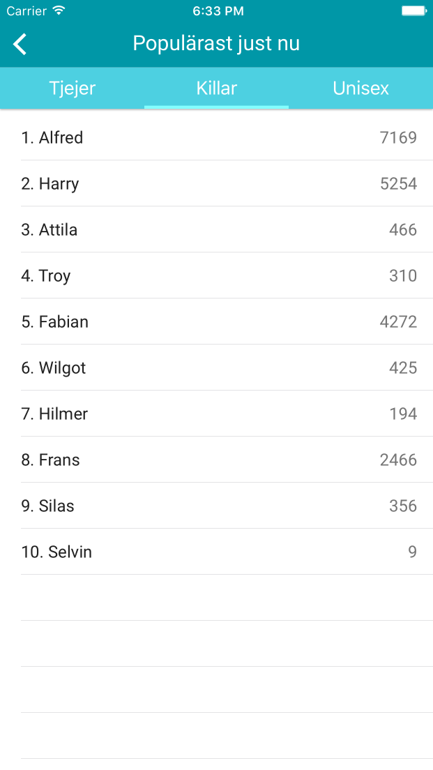 ger dig en syn på vilka namn som andra tycker om just nu.